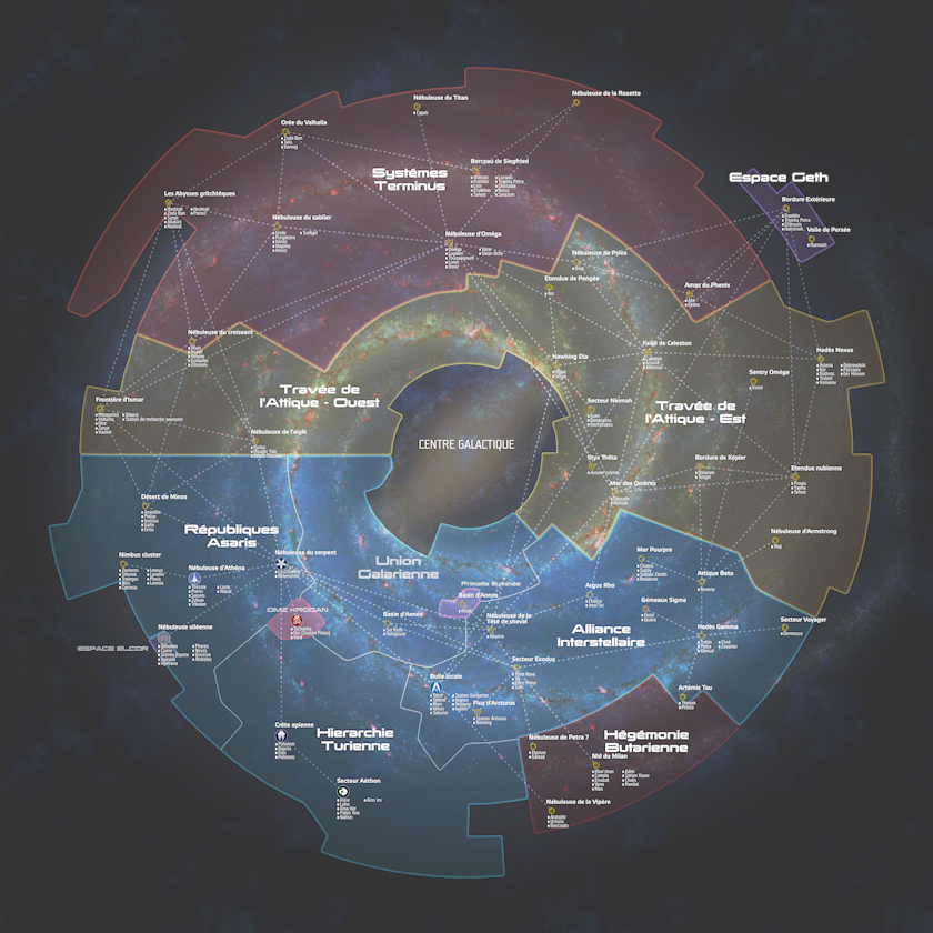 Carte de la galaxie Mass Effect, par Langvar, pour le jeu de rôle Mass Effect Génésys.